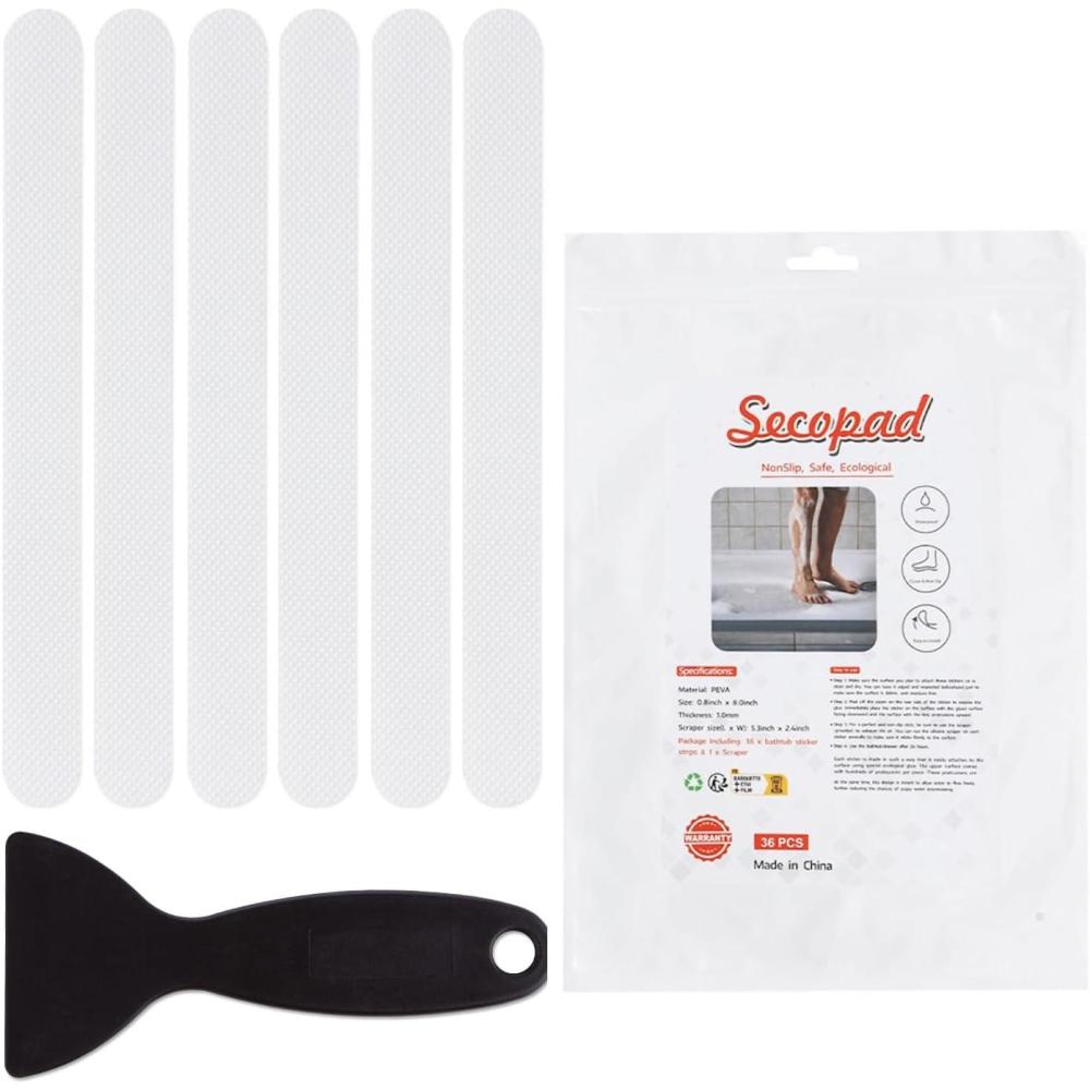 The package comprises 36 pieces (0.8”x7.9”) of clear stickers alongside 1 high-quality silicone scraper. Ideally, the 36 stickers can occupy most of the surface of bathtub thereby reducing the risk of accidental slips. On top of that, you can even use these stickers on the stairs to make them much more secure.
