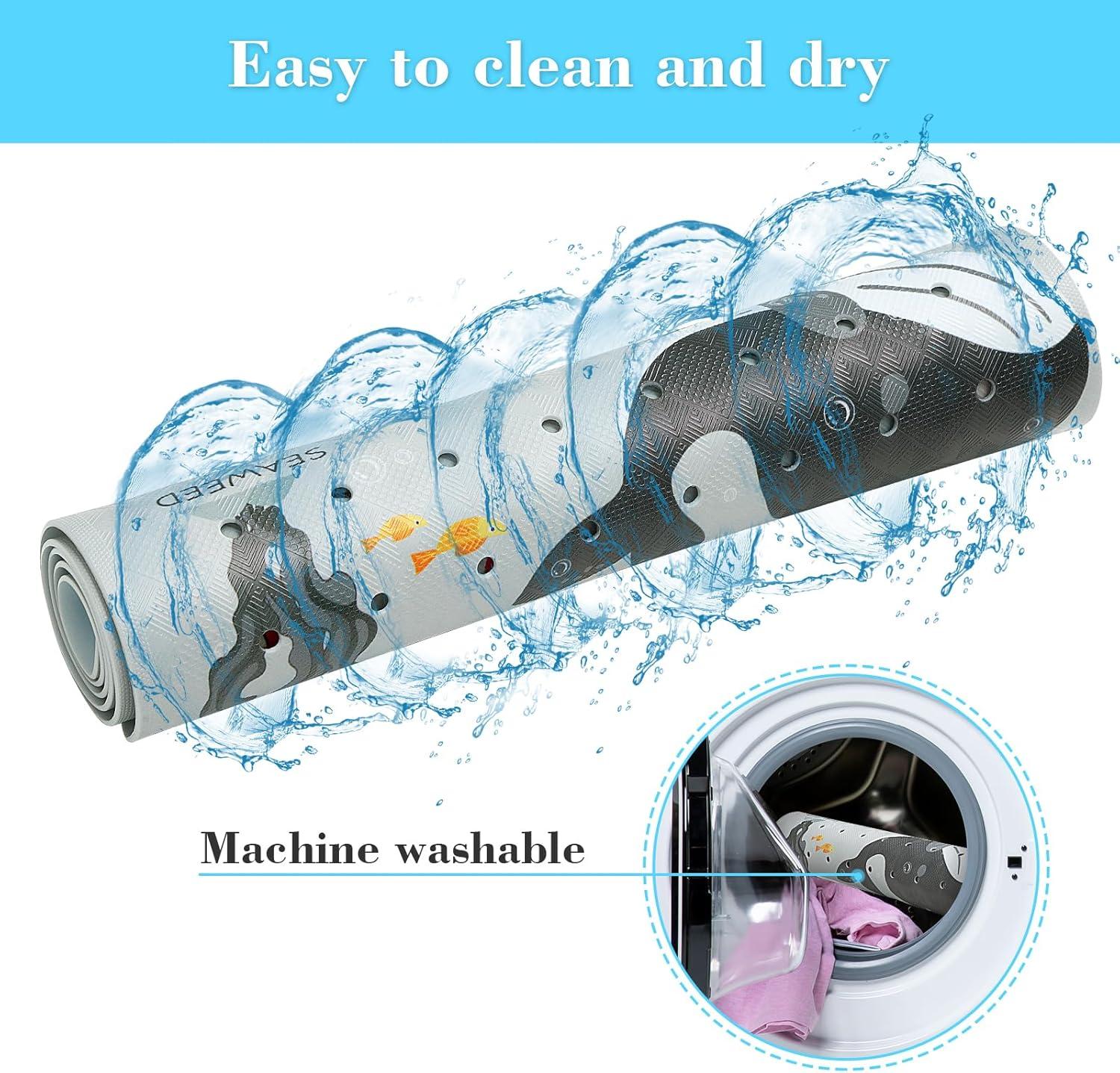 Easy to clean and use: This non slip bathtub mat is machine washable, smooth it and press on each suction cup with your hands or walk on them to make it stick firmly to the bottom of the bath tub when use
