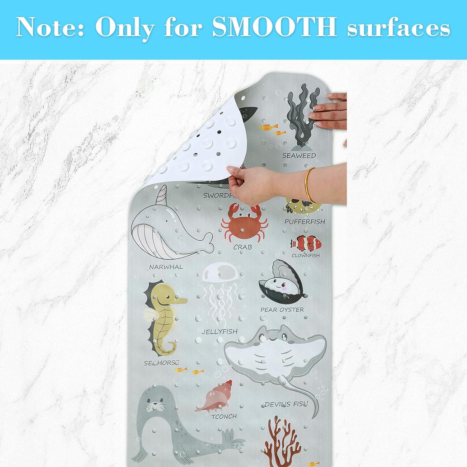 imageBaby Bath Mat Cartoon Kids Bathtub Mat Non Slip for Toddler Bath Shower Anti Slip 40In X 16In with Drain Holes and Suction Cups Machine Washable Pink Sea AnimalsGreige Sea Animals