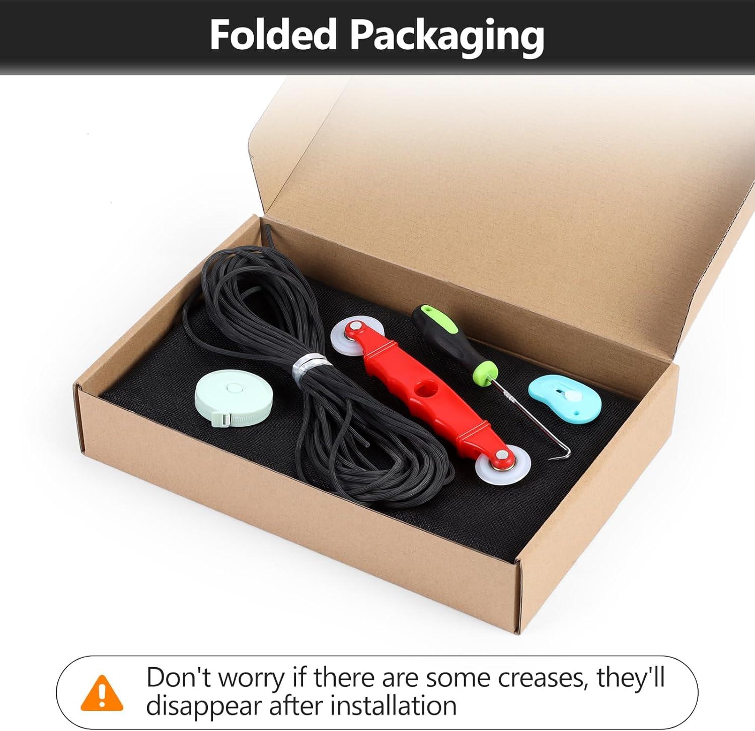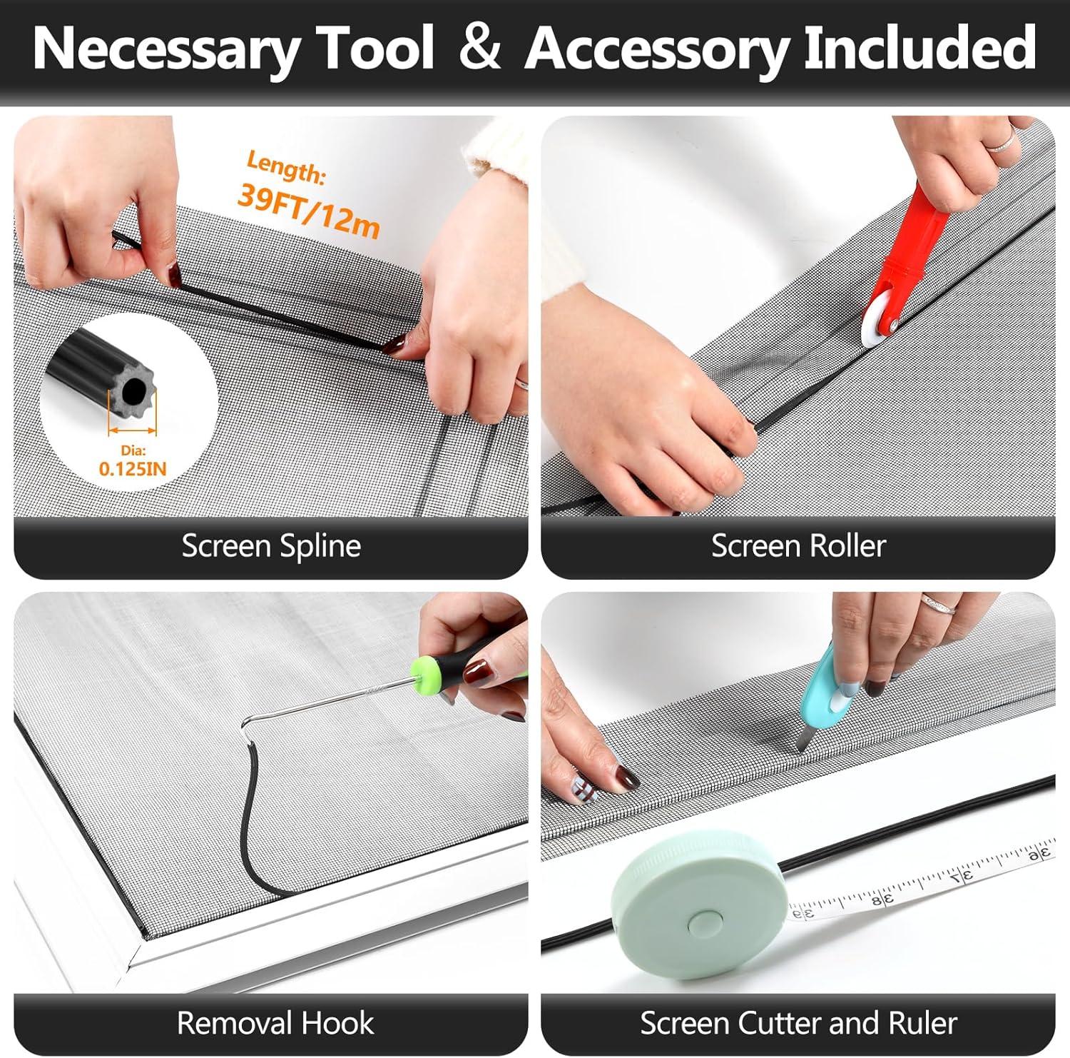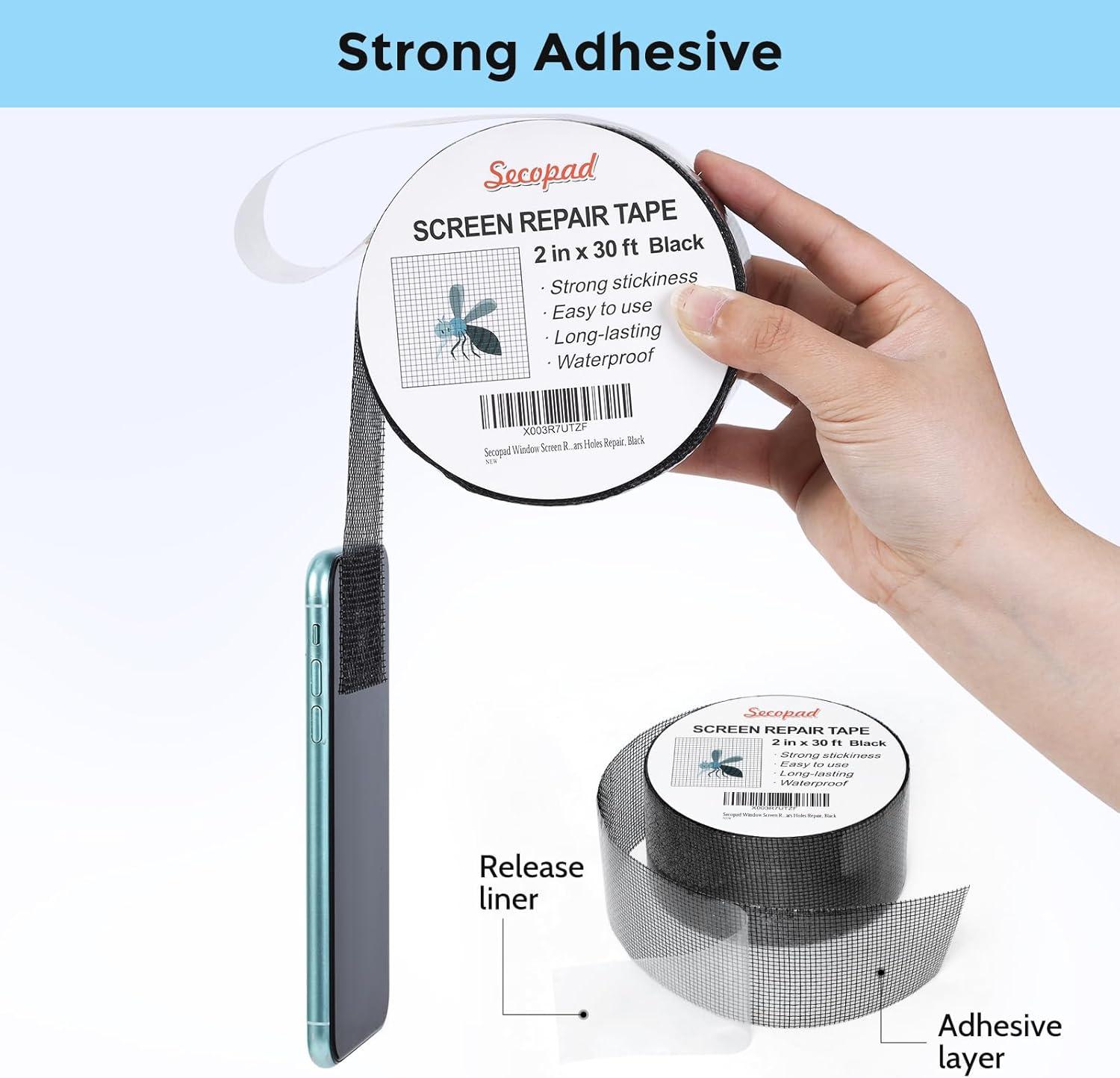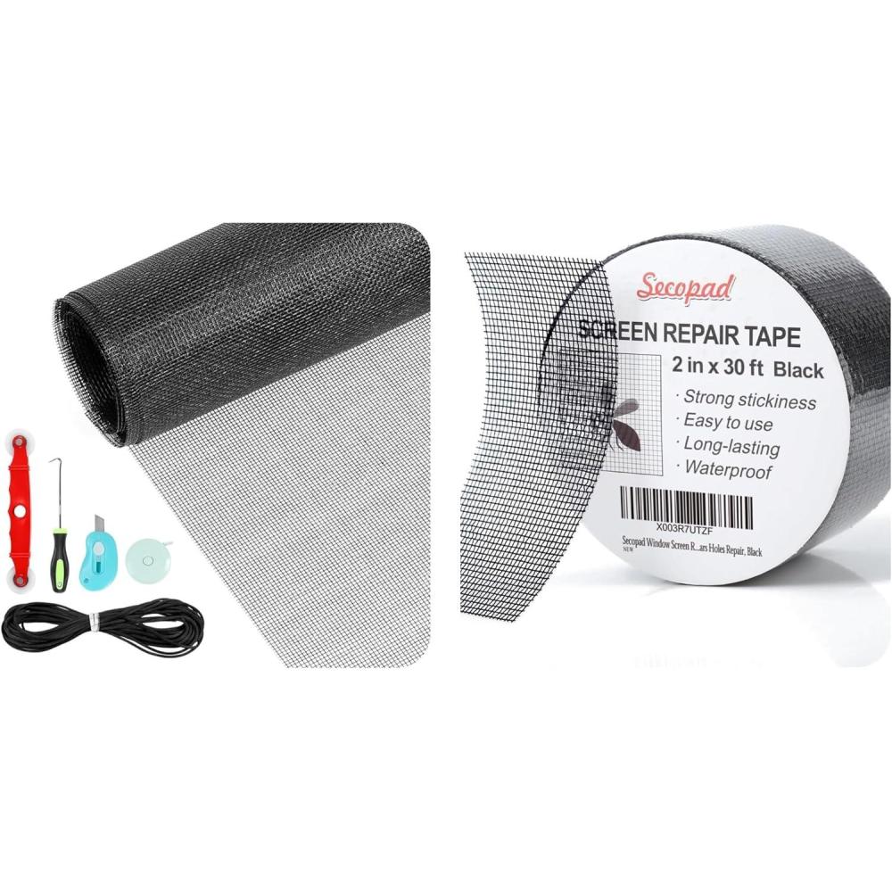 Secopad 48IN X 177IN Window Screens Replacement Repair Kit and 2 in X 30 FT (360IN) Black Window Screen Repair Tape