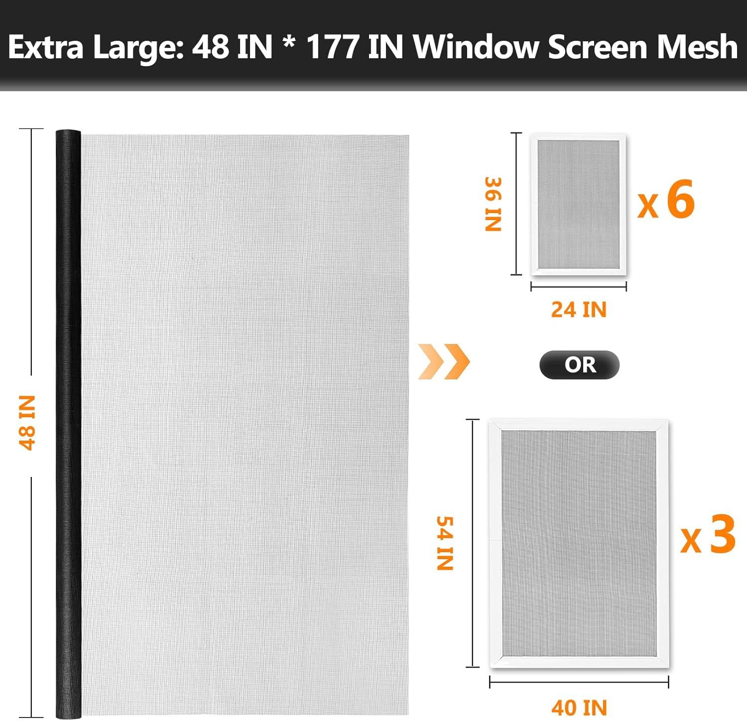 Black 48IN X 177IN Window Screens Replacement Repair Kit and 2 in X 30 FT (360IN) Window Screen Repair Tape