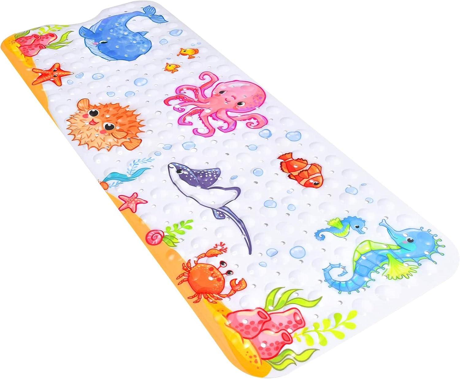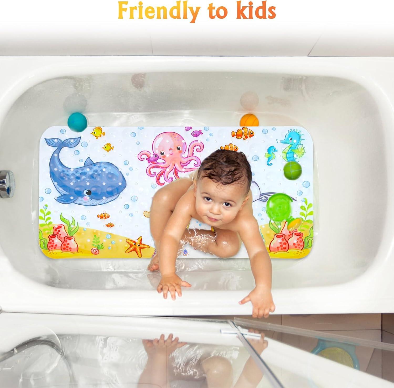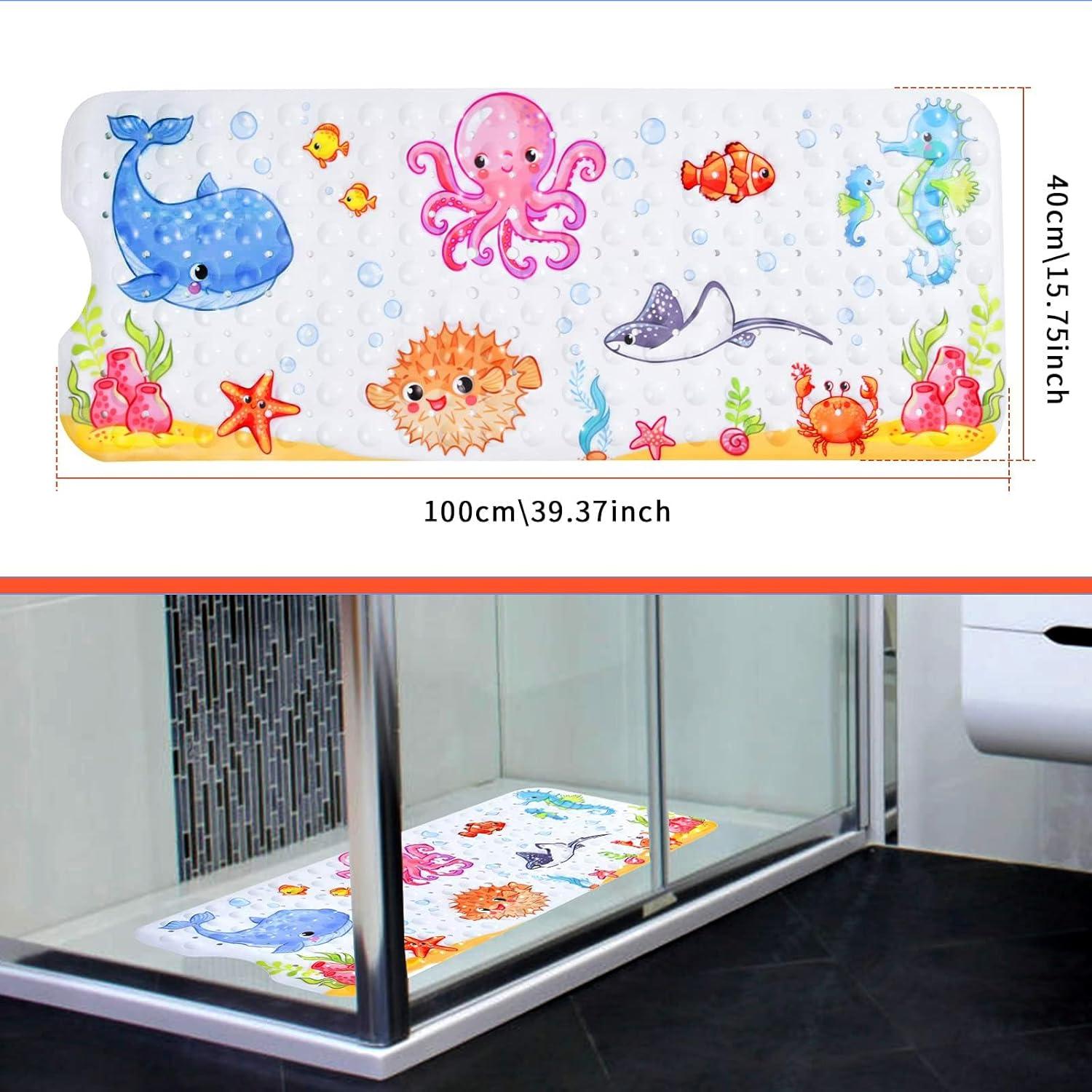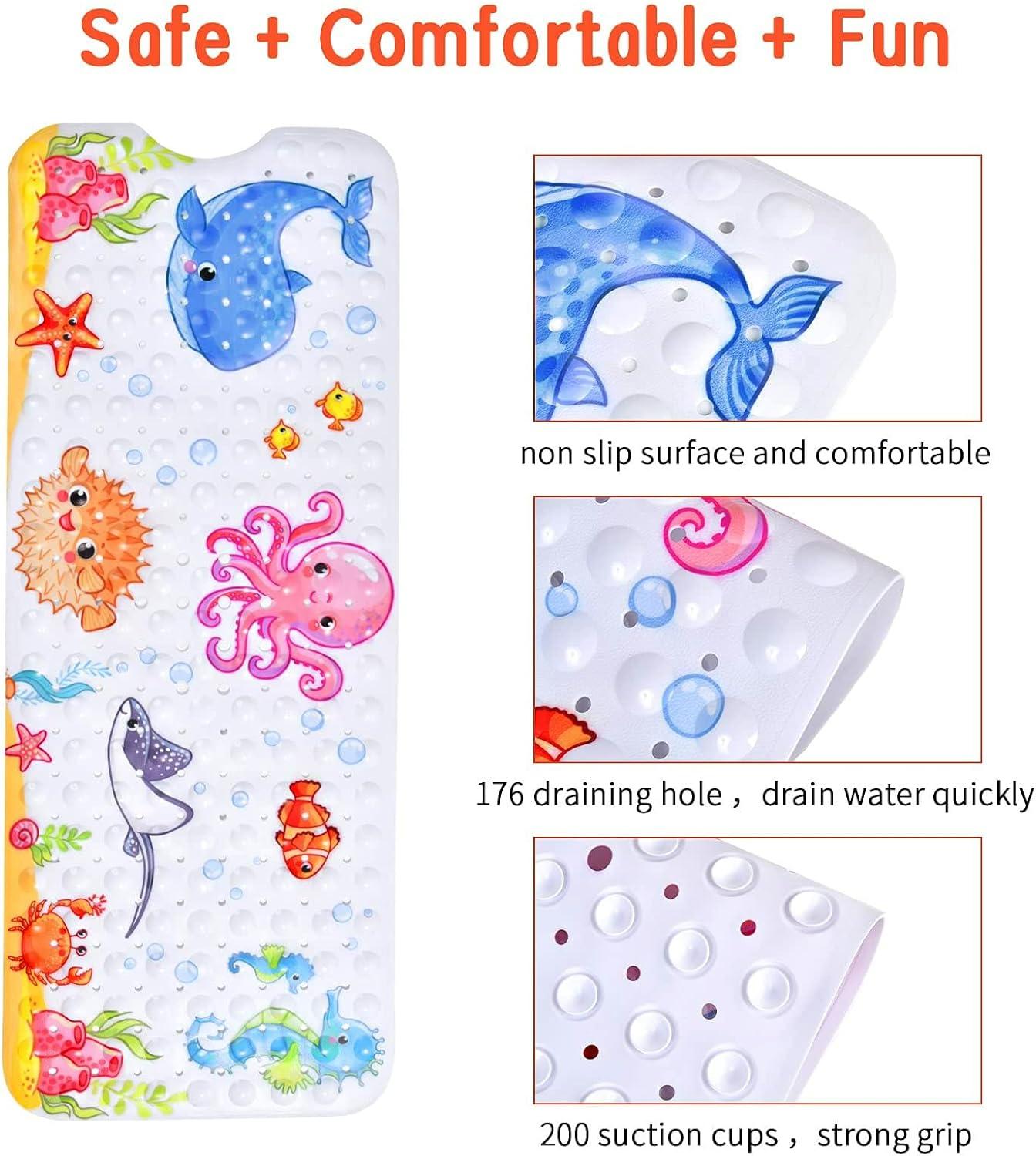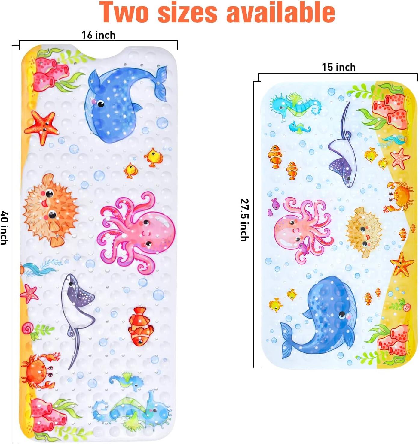 Anti slip kid bath mats for tub bathroom accessories is 40 x 16 inches large, which covers the full bathtub for more safety. The size is also good for kids shower floor
