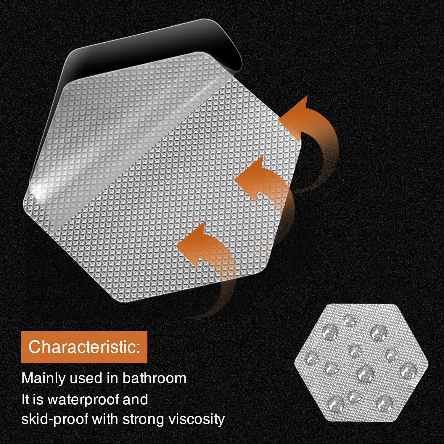 Design Principle. Each sticker is made in such a way that it easily attaches to the surface using special glue. The upper surface comes with approximately 1250 tiny protrusions per piece. These protrusions are meant to increase friction. So you can stay safe with it and it’s also gentle for you skin. At the same time, this design is meant to allow water to flow freely further reducing the chances of soapy water accumulating.