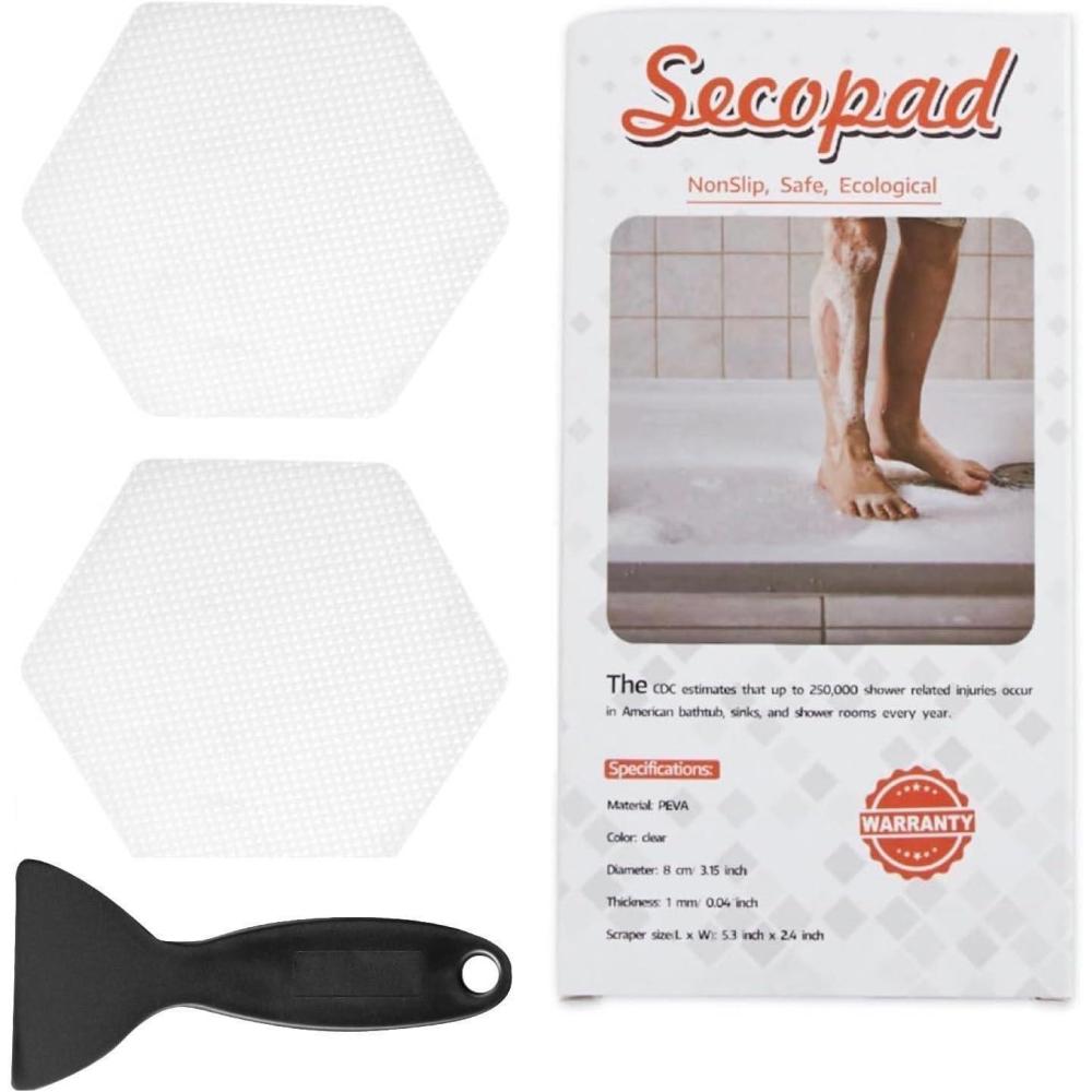 The package comprises 12 pieces (diameter about 8.0cm or 3.15-inch) of clear stickers alongside 1 high-quality silicone scraper. Ideally, the 12 stickers should occupy at least 1/3 the surface thereby reducing the risk of accidental slips. On top of that, you can even use these stickers on the stairs to make them much more secure.