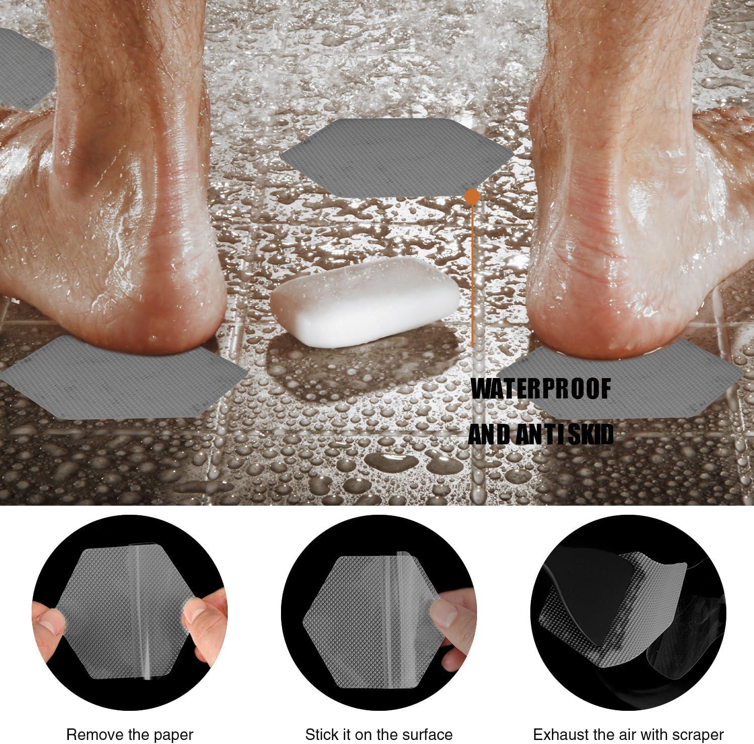 Original Bathtub Stickers Non-Slip, Hexagon Safety Shower Treads Adhesive Appliques with Premium Scraper(Grey)