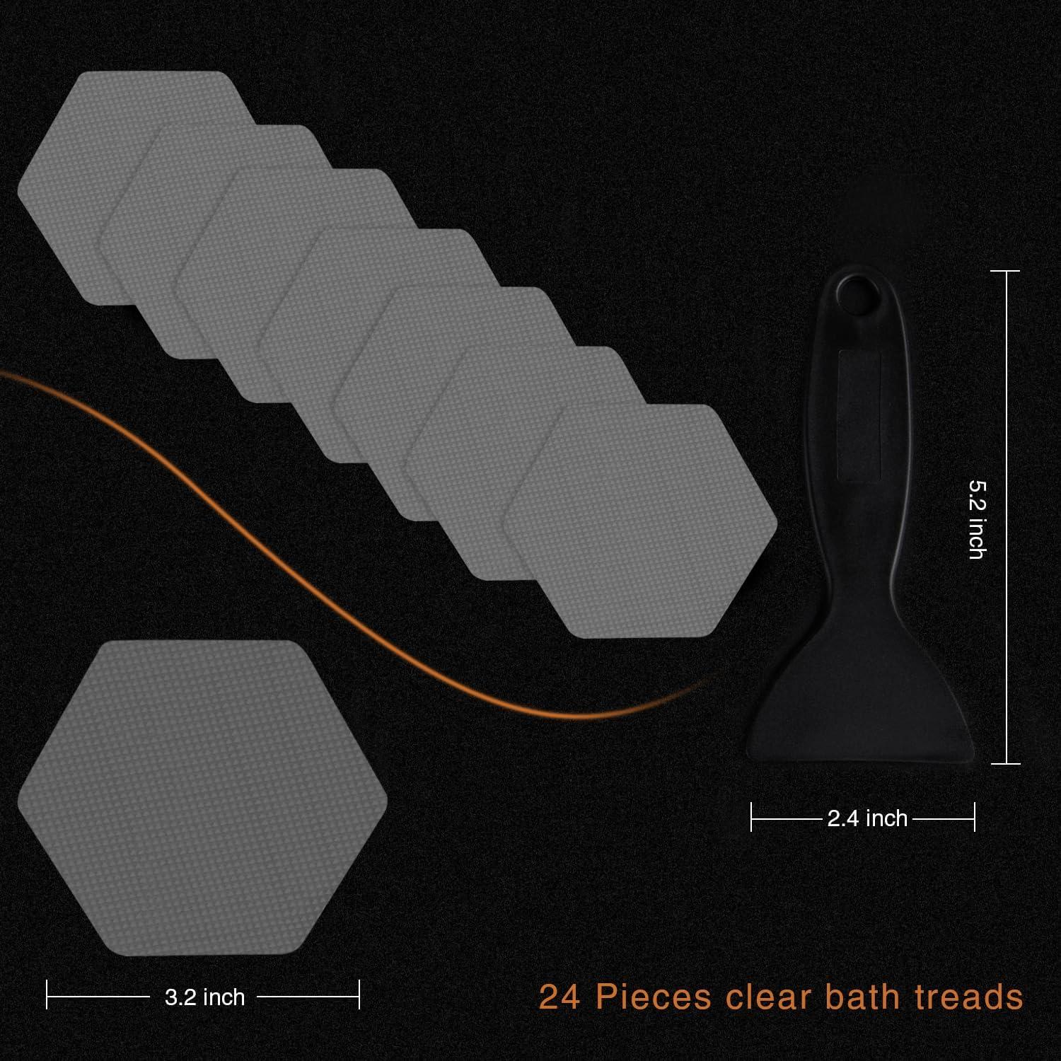 Original Bathtub Stickers Non-Slip, Hexagon Safety Shower Treads Adhesive Appliques with Premium Scraper(Clear)