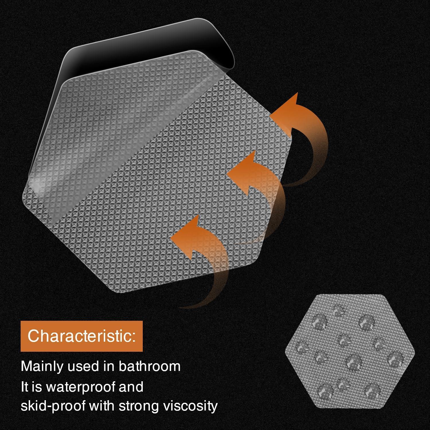 imageOriginal Bathtub Stickers NonSlip Hexagon Safety Shower Treads Adhesive Appliques with Premium ScraperGrey