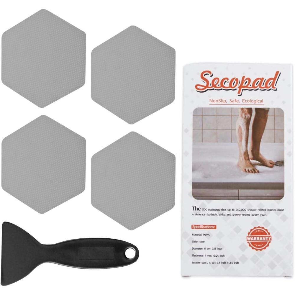 The package comprises 12 pieces (diameter about 8.0cm or 3.15-inch) of clear stickers alongside 1 high-quality silicone scraper. Ideally, the 12 stickers should occupy at least 1/3 the surface thereby reducing the risk of accidental slips. On top of that, you can even use these stickers on the stairs to make them much more secure.