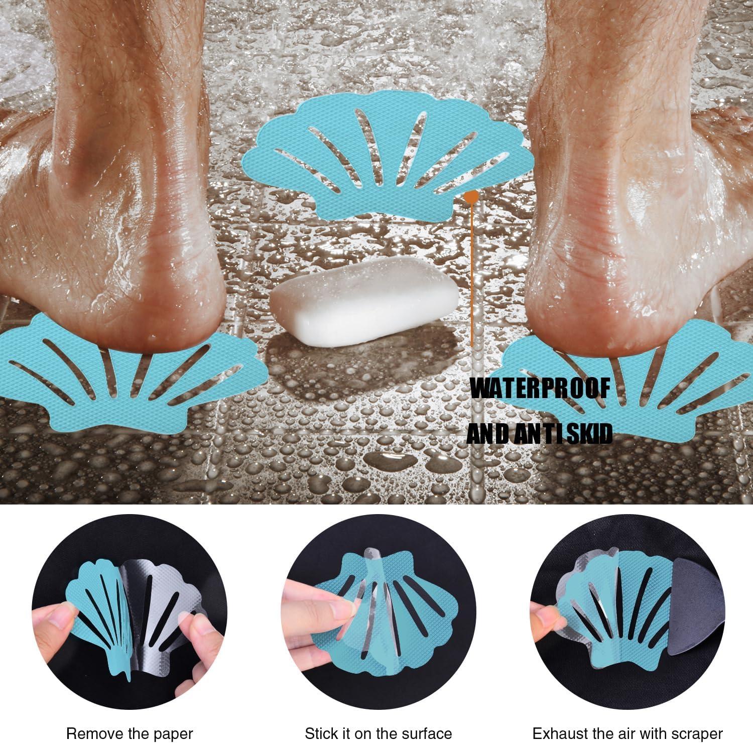 Original Bathtub Stickers Non-Slip, River-Mussel Safety Shower Treads Adhesive Appliques with Premium Scraper